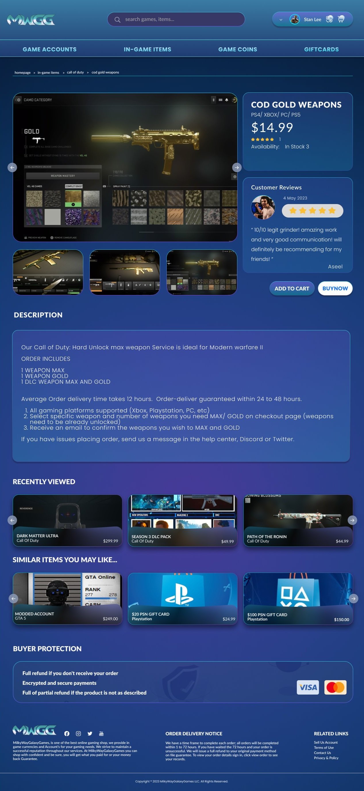 MilkyWayGalaxyGames is one of the best online gaming shops. Their website and portal provide gamers with easy access to browse and purchase digital merchandise such as in-game currencies, leveled-up accounts, skins, and more. Games supported include popular titles such as Fornite, Call of Duty, and GTA.