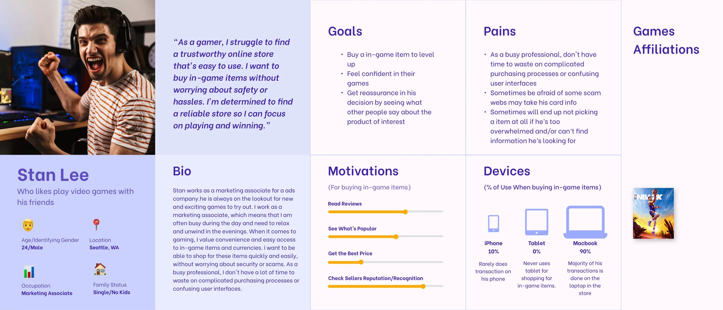I recruited and tested four gamers that loosely aligned with my developed persona and usability tested them with the MWGG website to further uncover any issues. They completed tasks related to a typical purchase journey.