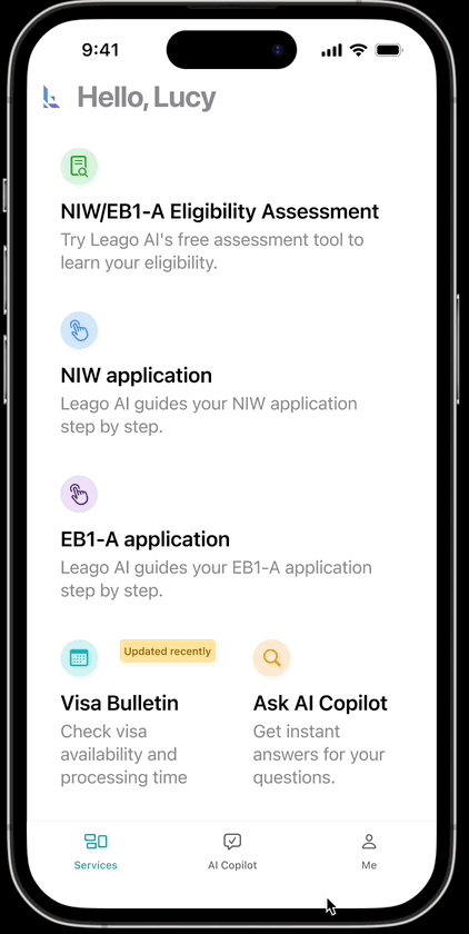Check your priority date, case assessment status, ask AI Copoilt all your inquires, personal information and invite a friend to get coupon when you purchase.